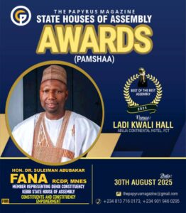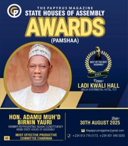 The upcoming Papyrus Magazine State Houses of Assembly Awards (PAMSHAA) 2025 has spotlighted lawmakers from Kebbi State, with several members of the House of Assembly announced as honourees for their service and contributions to the people. The award ceremony will take place on Saturday, August 30, 2025, at the Ladi Kwali Hall, Abuja Continental Hotel.