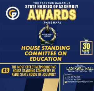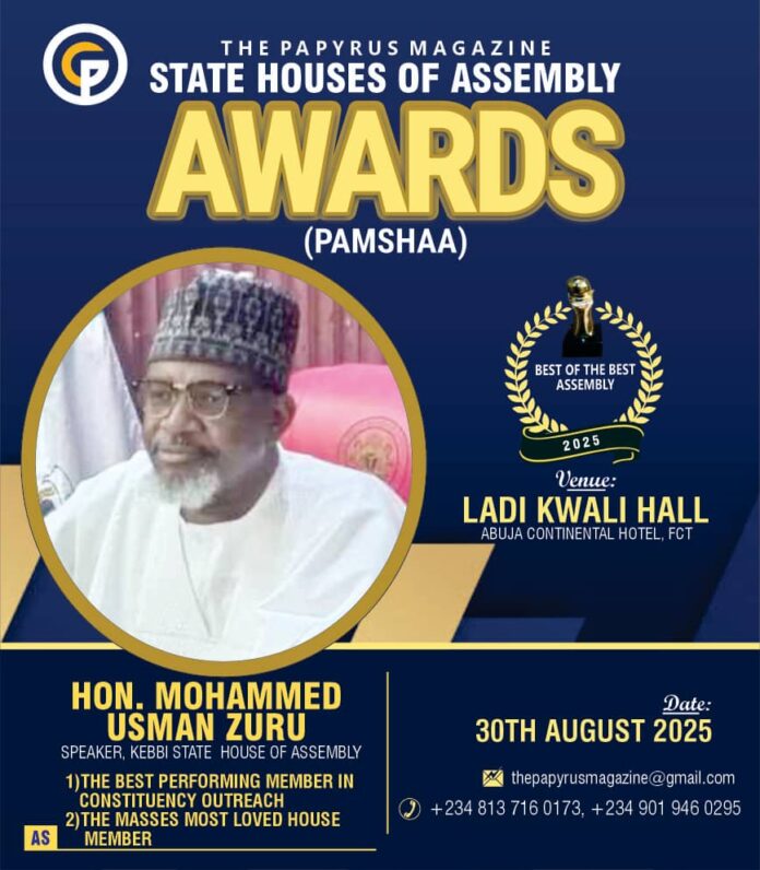 The upcoming Papyrus Magazine State Houses of Assembly Awards (PAMSHAA) 2025 has spotlighted lawmakers from Kebbi State, with several members of the House of Assembly announced as honourees for their service and contributions to the people. The award ceremony will take place on Saturday, August 30, 2025, at the Ladi Kwali Hall, Abuja Continental Hotel.