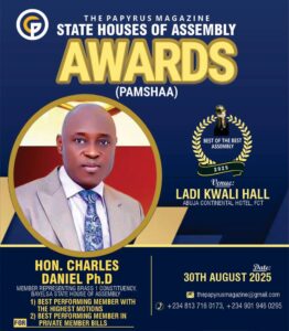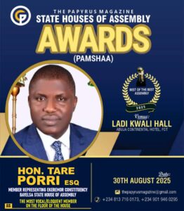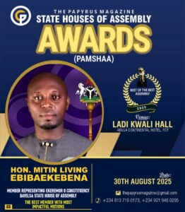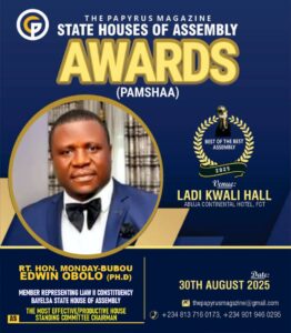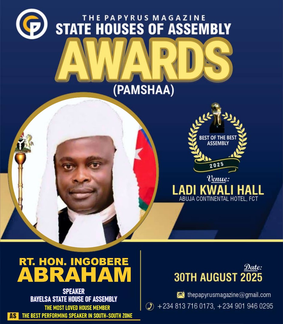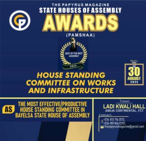 Members of the Bayelsa State House of Assembly have been confirmed as recipients of recognition at the upcoming 2025 Papyrus Magazine State Houses of Assembly Awards (PAMSHAA), with organisers unveiling the state’s lineup of awardees ahead of the ceremony.