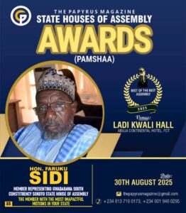 The 2025 ceremony, billed for Saturday, 30th August, 2025 at the Ladi Kwali Hall, will see Sokoto lawmakers celebrated for categories that reflect people-driven politics, grassroots service, and even interfaith harmony — a mix rarely associated with legislative awards.