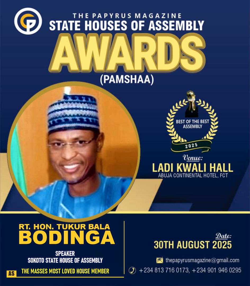 The 2025 ceremony, billed for Saturday, 30th August, 2025 at the Ladi Kwali Hall, will see Sokoto lawmakers celebrated for categories that reflect people-driven politics, grassroots service, and even interfaith harmony — a mix rarely associated with legislative awards.